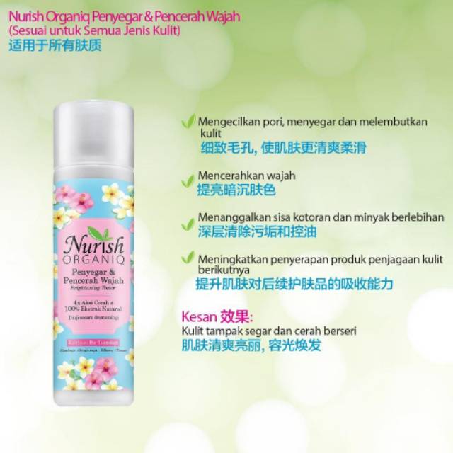 Menawarkan penghantaran percuma di seluruh Malaysia dengan pembelian dalam talian. Nurish Organiq Brightening Toner.